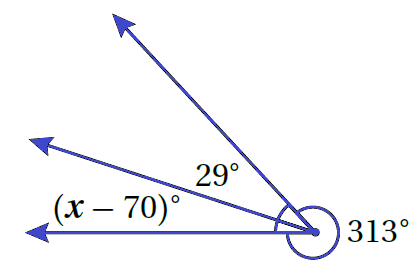 إذا كانت الزوايا الآتية: تقع على خط مستقيم ، فإن قياس الزاوية x يساوي