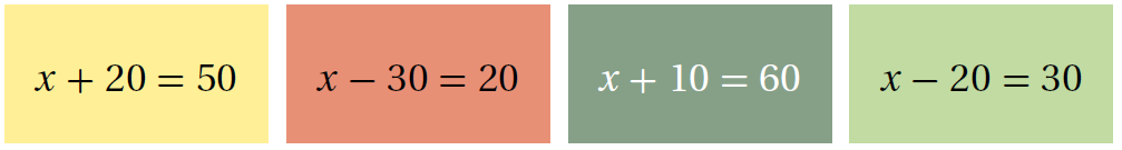 لدى سعاد مبلغًا من المال ، أنفقت منه 25 دينار ، فبقي معها 7 دنانير ، فإنّ المعادلة التي يمكن استخدامها لحساب المبلغ الذي كان مع سعاد، هي :