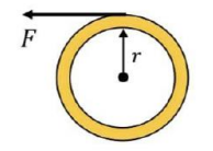 * حلقة رقيقة فلزية نصف قطرها كتلتها تدور من السكون حول محور يمر في مركزها عموديا اذا تأثرت بقوة مماسية لمدة , أجب عن الثلاثة أفرع التالية