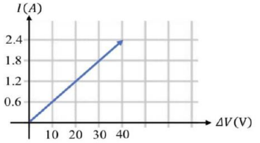14- اذا رسمت العلاقة بين التيار المار في المقاومة وفرق الجهد بين طرفيها كما في الشكل , عند زيادة درجة الحرارة فإن ميل هذا المنحنى :