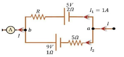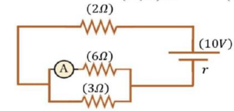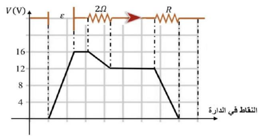 17- يمثل الشكل المجاور دارة كهربائية قدرة البطارية المنتجة فيها تساوي ان مقدار المقاومة الداخلية بوحدة وقراءة بوحدة الامبير على الترتيب