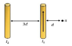 24- من الشكل المجاور إذا انعدم المجال المغناطيسي عند النقطة فان مقدار واتجاها يساوي