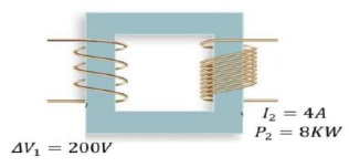 30- يمثل الشكل المجاور محول كهربائي مثالي , معتمدا على البيانات المثبتة عليه فإن التيار المار في الملف الابتدائي وفرق الجهد بين طرفي الملف الثانوي على الترتيب تساوي