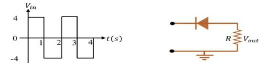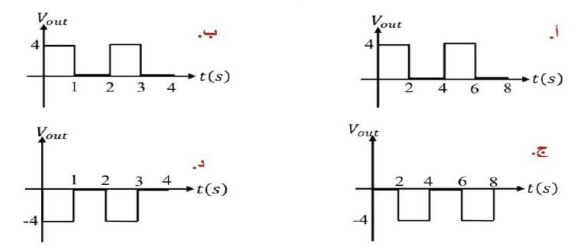 36- اعتمادا على الدارة الموضحة في الشكل ان شكل فرق الجهد () عبر المقاومة اذا عكس الثنائي هو