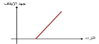 39- يمثل الرسم البياني المجاور العلاقة بين جهد الايقاف وتردد الضوء الساقط في الخلية الكهروضوئية , ميل هذه العلاقة هو :
