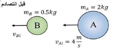 3- تلحق الكرة الكرة وتصطدم بها فإذا كان الزخم الخطي للكرة بعد التصادم مع فإن مقدار التغير في الزخم الخطي للكرة بوحدة يساوي