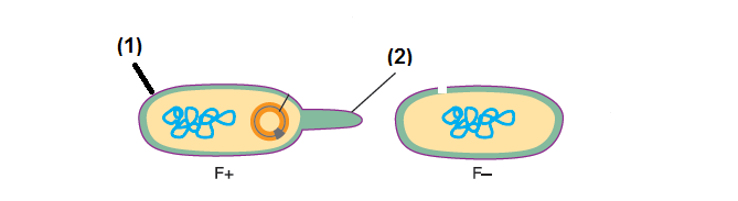 الشكل الآتي يمثل نقل المادة الوراثية بالاقتران، والمطلوب:
