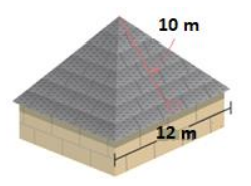25- يظهر في الشكل المجاور، سقف منزل على شكل هرم رباعي منتظم، يراد تغطيته بقطع خشبية مساحة كل منها , فما عدد القطع الخشبية ا لتي نحتاجها لتغطية السقف