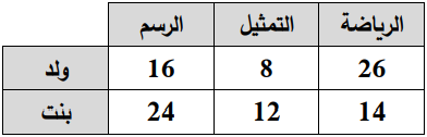 40- سئل 100 طفل عن هواياتهم المفضلة، وُنظمت إجاباتهم في الجدول المجاور .