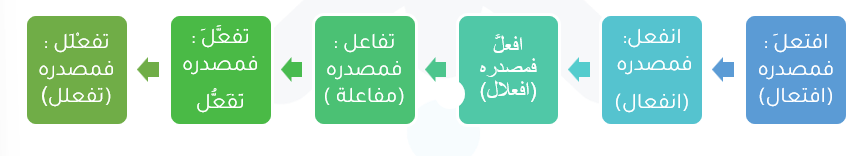 • تفاعَلَ ومصدرُه تفاعُل، مثلا: تَقابَلَ: تَقابُل