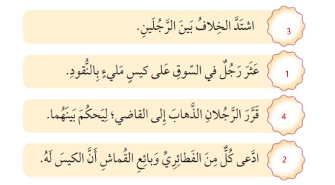 أرتب الأحداث حسبب ورودها في النص المسوع :
