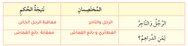 أقارن بين النصين من حيث : المختصمان ونتيجة الحكم