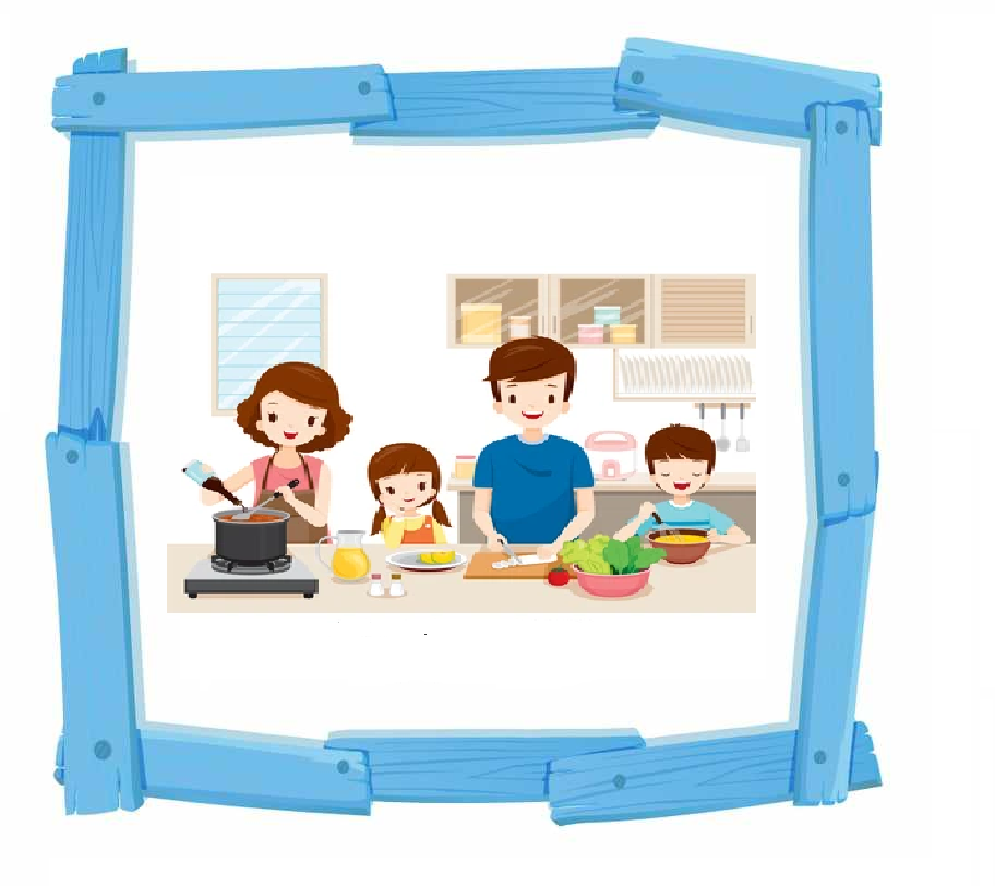 بالتعاون مع أسرتي ، أبحث عن صورة لتعاون أسرة في المنزل، وألصقها داخل الإطار .