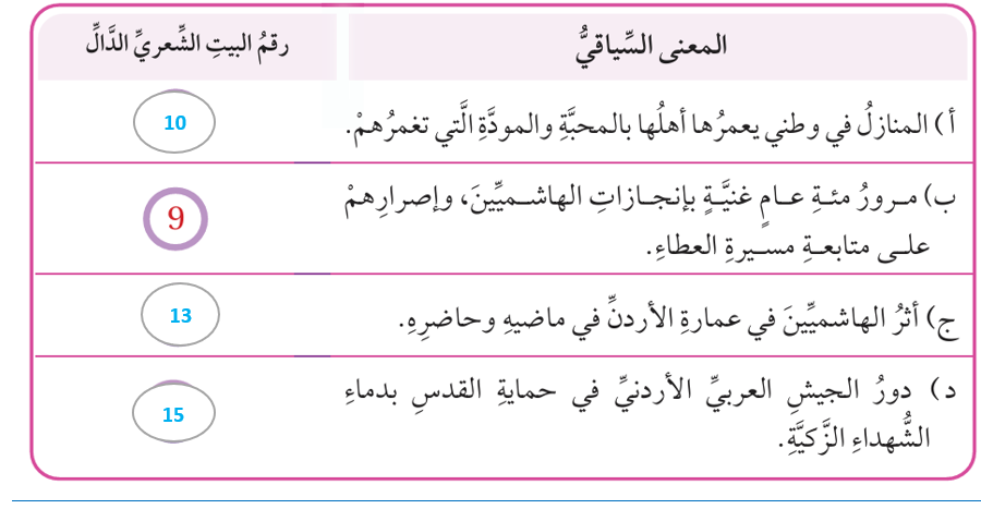 3) أعيّن البيت الشّعري الّذي يدلّ على كل معنًى ممّا يأتي :