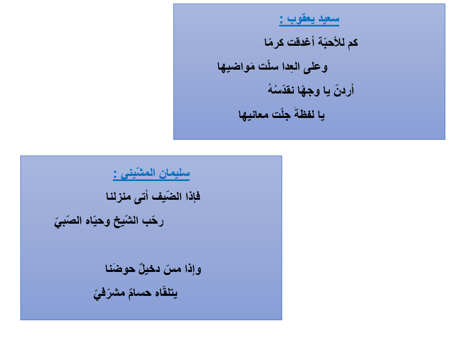5) يفتخر الشّاعِران سعيد يعقوب ، وسليمان المشّيني بالأردنّ وشعبه ، أبيّن الفكرة الّتي اتّفَقَ عليها الشّاعران، مبديًّا رأيي في التّعبير الأجمل ومعلّلًا .