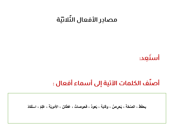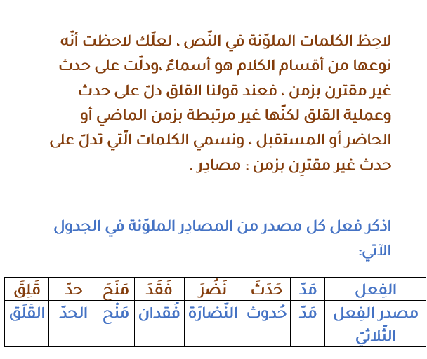1. المصدر :  اسم يدلّ على حدث غير مُقترِن بزمن .