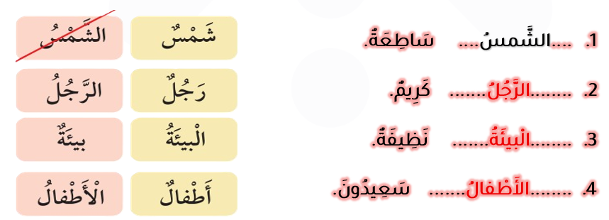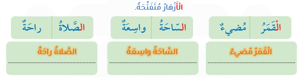 أَقْرَأُ الْجُمَلَ، وَأُلَاحِظُ الْكَلِمَاتِ الْمُلَوَّنَةَ: