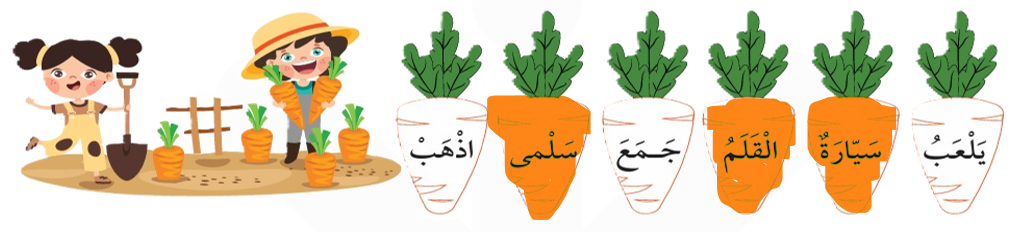 أُسَاعِدُ الْمُزَارِعَ بِتَلْوِينِ الْجَزَرَاتِ الَّتِي تَحْوِي أَسْمَاءً: