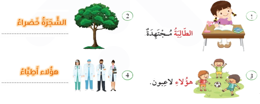 أَكْتُبُ جُمْلَةً اسْمِيَّةً تُعَبِّرُ عَنْ كُلِّ صُورَةٍ، كَمَا فِي الْمِثَالِ: