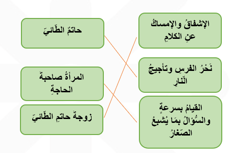 1. أُميِّزُ الصِّفاتِ الّتي انَّصَفَ بِها حاتمٌ الطَّائيّ مِنْ غيرِها في ضوءِ ما استمعتُ إِليهِ، بوضعِ إشارةِ (✔️)
