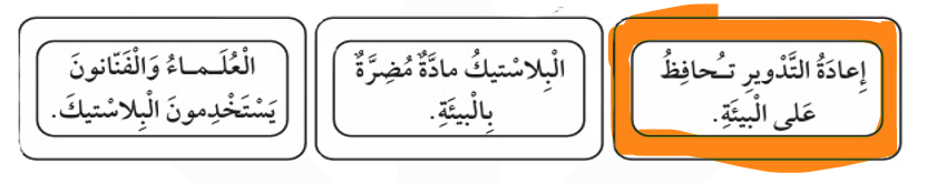 • يُفَكِّرُ الْعُلَمَاءُ فِي إِعَادَةِ (تَدْوِيرِ) ......استخدام......... الْمُنْتَجَاتِ الْبِلَاسْتِيكِيَّةِ.