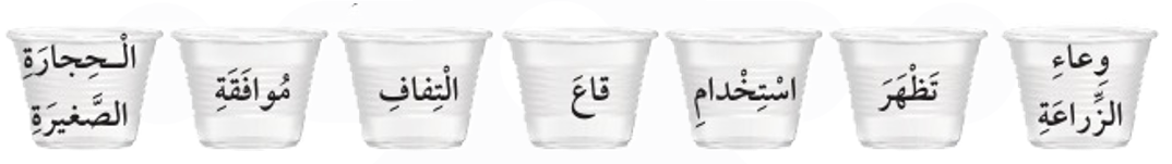 • ضَعْ عَدَدًا مِنَ الزُّهُورِ الْبِلَاسْتِيكِيَّةِ فِي ( أَصيصٍ) ......وعاء الزراعة...... وَثَبِّتْها بِبَعْضِ (الْحَصى) ....الحجارة الصغيرة......... .