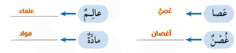 أَذْكُرُ جَمْعَ الْكَلِمَاتِ الْآتِيَةِ كَمَا سَمِعْتُهَا فِي النَّصِّ: