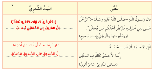 أحدد البيت الشعري الذي يتفق مضمونه مع النصيين الآتيين :