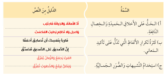 يندرج النصان الشعريان ضمن (شعر الحكمة) أبحث فيهما عن دليل لكل سمة من السمات الآتية :