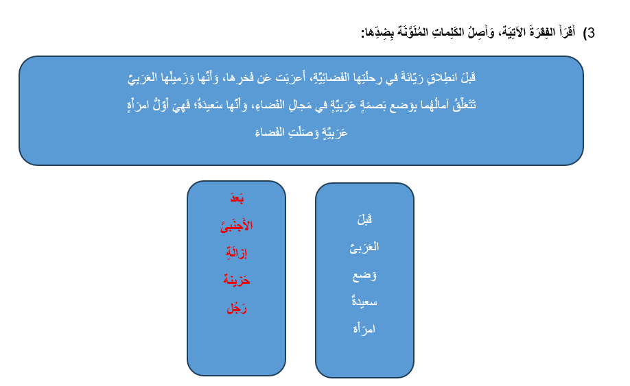 ١) أَستَنِتِجُ مَعانِيَ الكَلِماتِ وَالتَّراكيبِ المُلَوَّنَةِ في كُلِّ جُملَةٍ مِنَ الجُمَلِ الآتِيَةِمِن خِلالِ السِیاق:
