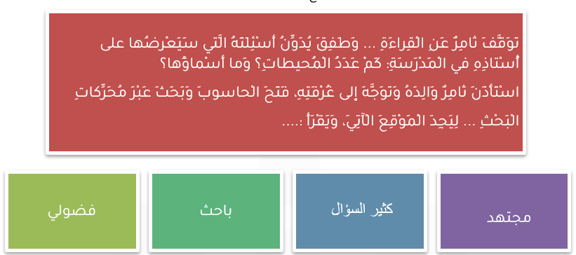 (8)أقرأ الفقرتين الآتيتين ، وأستنتج منهما صفات ثامر :