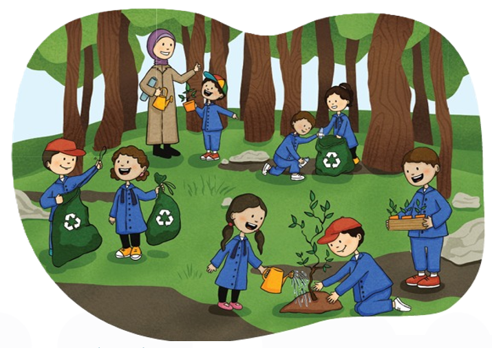 مَا هِيَ نَتَائِجُ الْمُحَافَظَةِ عَلَى الْأَشْجَارِ ؟ تُلَطِّفُ الْمُنَاخَ، وَتَنْشُرُ النَّسِيمَ الْعَلِيلَ، وَهِيَ تُظَلِّلُنَا وَتَحْمِينَا مِنْ حَرَارَةِ الشَّمْسِ، وَمِنْ بَرَاعِمِهَا يَتَوَافَرُ لَنَا الثَّمَرُ اللَّذِيذُ، وَإِلَى أَغْصَانِهَا تَلْجَأُ الْعَصَافِيرُ، وَهِيَ تَحْفَظُ التُّرْبَةَ مِنَ الِانْجِرَافِ.