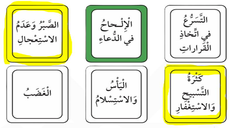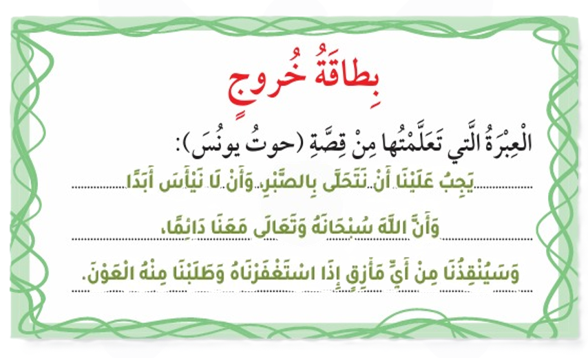 أُلَوِّنُ الْإِطَارَ حَوْلَ الصِّفَاتِ الْإِيجَابِيَّةِ الَّتِي تَعَلَّمْتُهَا مِنْ قِصَّةِ (حُوتِ يُونُسَ)، كَمَا فِي الْمِثَالِ.