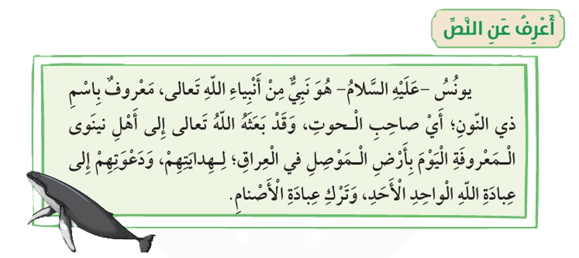 أُشَارِكُ زُمَلَائِي / زَمِيلَاتِي مَا أَجِدُهُ أَكْثَرَ مُتْعَةً وَتَشْوِيقًا: أَنْ تُرْوَى الْقِصَّةُ عَلَى لِسَانِ الْحُوتِ أَوْ عَلَى لِسَانِ سَيِّدِنَا يُونُسَ عَلَيْهِ السَّلَامُ، وَأُوَضِّحُ وَجْهَةَ نَظَرِي.