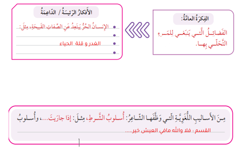 أَفهَمَ النَّصَّ الشِّعرِيَّ، وَأُحَدِّدَ الفِكرَةَ العامَّةَ