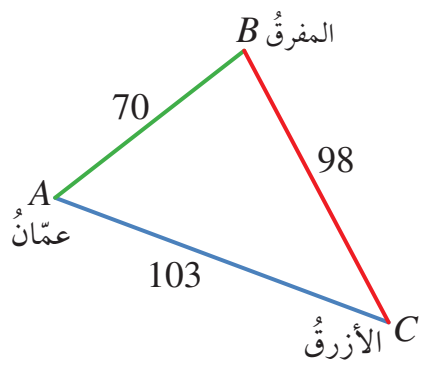المسافة بين عمان والأزرق ،وبين عمان والمفرق ،وبين المفرق والأزرق .