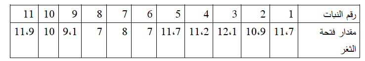 تشير مقادير فتحات الثغور في نباتات التجربة الضابطة أنها متشابه تقريبا في كل النباتات.
