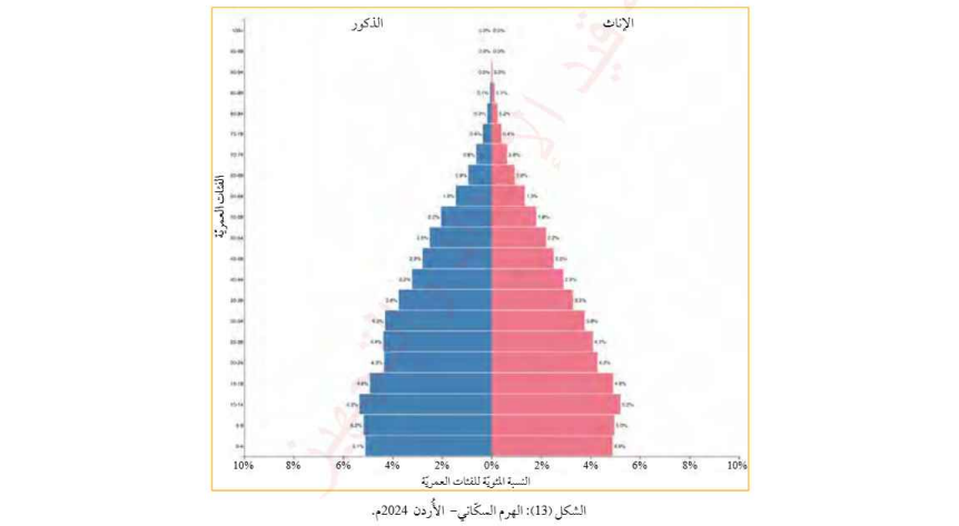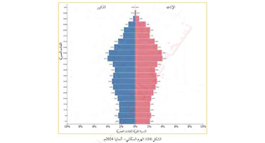 -أقارن بين التركيب العمري للسكان في الاردن والمانيا بالاعتماد على الهرم السكاني.