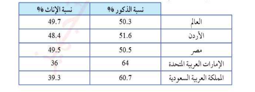 • لتعرف على التفاوت في التركيب النوعي بين الدول العربية ، أتأمل الجدول الآتي: