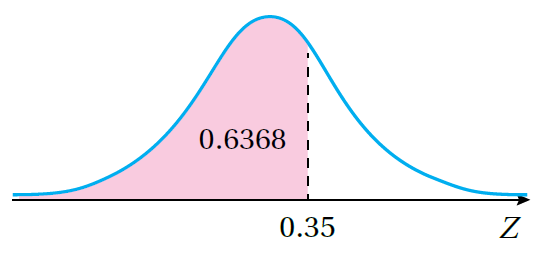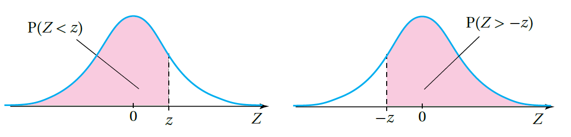 إذن، ( P(Z < z تساوي المساحة إلى يسار القيمة المعيارية z، وهي المساحة التي يُمكِن إيجادها باستعمال جدول التوزيع الطبيعي المعياري.