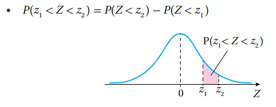 يُمكِن أيضًا استعمال الخصائص الأساسية للتوزيع الطبيعي، لإيجاد احتمال القِيَم التي تقع بين قيمتين معياريتين، وذلك بطرح احتمال القيمة المعيارية الصغرى من احتمال القيمة المعيارية الكبرى:
