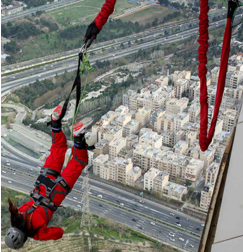 نشاط رياضي ينطوي على القفز من مناطق شاهقة الارتفاع في حين يكون القافز مربوطًا بحبل مطاطي يحقق مواصفات الأمان فعندما يقفز الشخص ويصل الى أقصى إزاحة يبدأ بالتذبذب إلى أعلى وأسفل وتكون الحركة توافقية بسيطة إذا حققت شروطها.