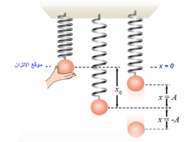 3) كلاً من تسارع الكرة والقوة المعيدة وقوة شد النابض عند موقع الاتزان عند موقع الاتزان