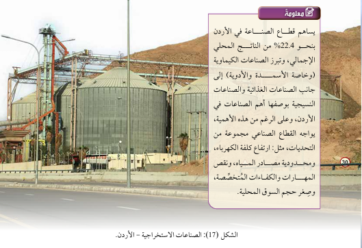 التعدين، مثل استخراج الفوسفات والبوتاس في الأردن، والحديد في أستراليا.