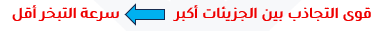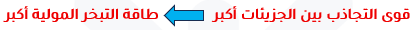الخلاصة: كلما كانت قوى التجاذب بين جزيئات السائل أقوى كان الحد الأدنى من الطاقة اللازمة لتبخره أكبر وسرعة تبخره أقل والعكس.