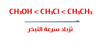 - بما أن الإيثانول يحتوي على قوى تجاذب أقوى فإن الحد الأدنى من الطاقة اللازمة لتبخر الإيثانول تكون أكبر، لذلك تكون سرعة تبخره اقل.
