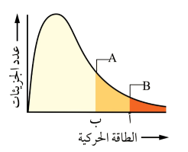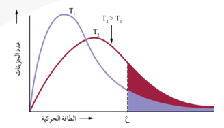 أ: عدد الجزيئات التي تمتلك الطاقة الحركية (ع).