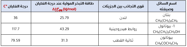 - يوضح الجدول طاقة التبخر المولية لعدد من السوائل عند درجة غليان.