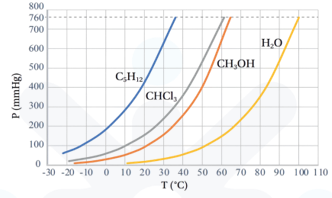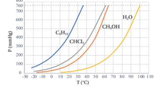 البنتان C5H12 ، وثلاثي كلورو ميثان CHCl3 ، الميثانول CH3OH والماء H2O. مع زيادة درجة الحرارة.