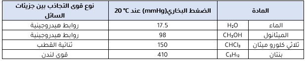 إذن نلاحظ أنه كلما كانت قوى التجاذب بين جزيئات السائل أقوى قل ضغطه البخاري والعكس.